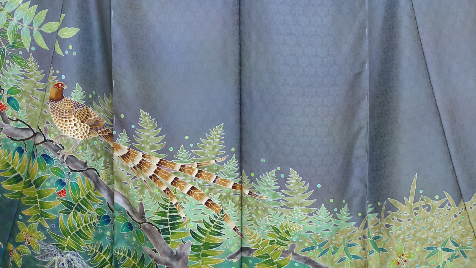 きものアトリエとりよろふは、染色作家 加藤寛司、加藤優佳が互いの感性を共鳴させ、デザインから染色、仕上げまで、その全ての工程を自ら手がけ、手描き友禅の作品を制作しています。